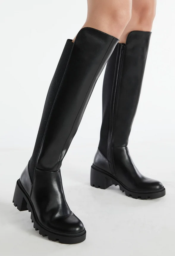 Remember the high boots from the 2000s? They’re back and better. This season, switch out your short boots for ones that go at least mid-calf. A black boot is always a staple that is easily paired with any outfit.